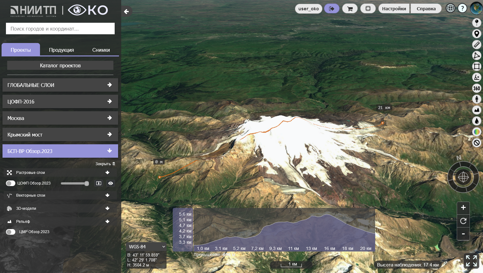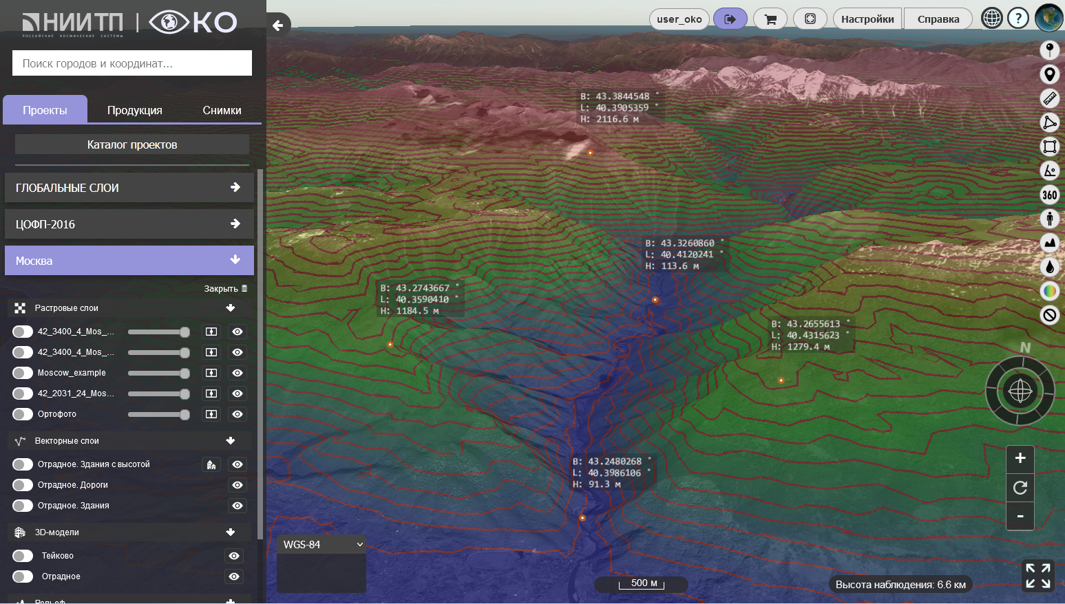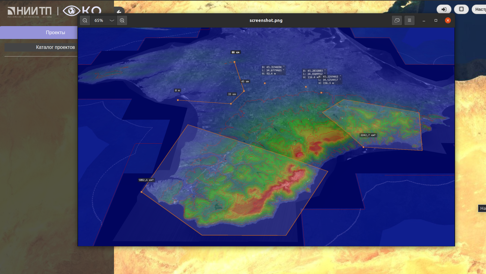 Геоинформационная WEB-платформа предназначенна для целей 3D-визуализации разнородных геоинформационных данных, проведения расчетов по ним с использованием инструментария платформы и наглядной демонстрации полученных результатов.